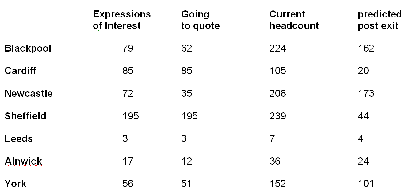When we met them on 24 April SSCL told PCS that the latest position on Voluntary Exits was –